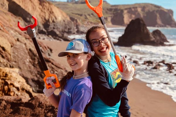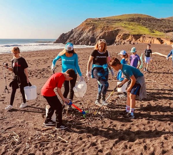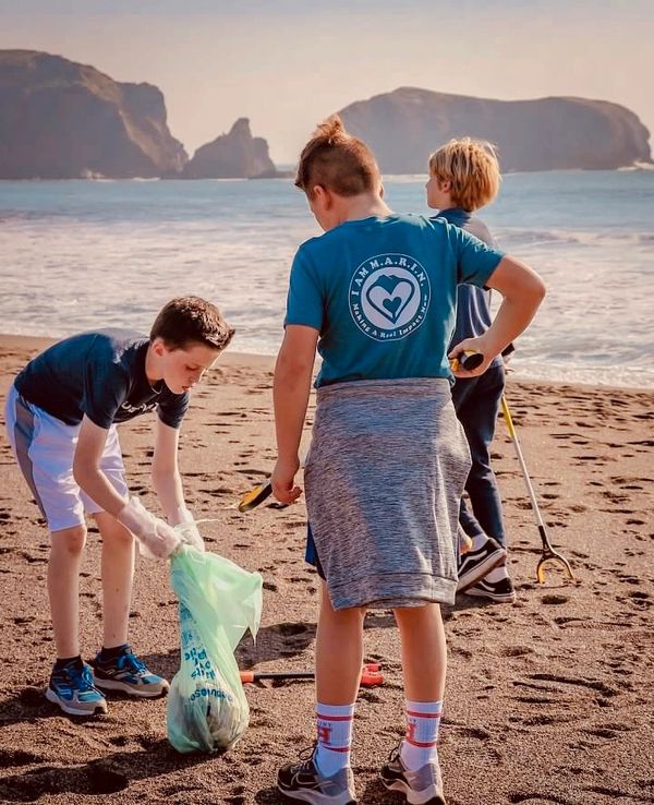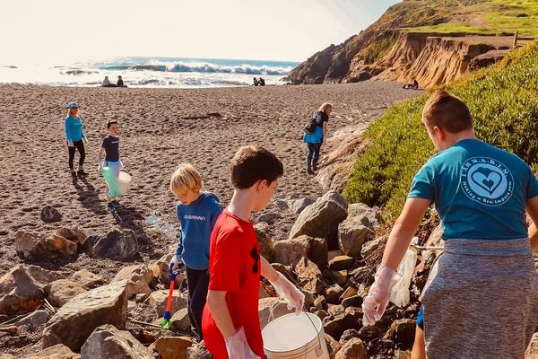 Team M.A.R.I.N., made up of middle school students and parents, removed garbage from Rodeo Beach. The kids cleared the entire beach of trash, while playing on the natural seesaws and showing off their “trash grabber dance moves”.